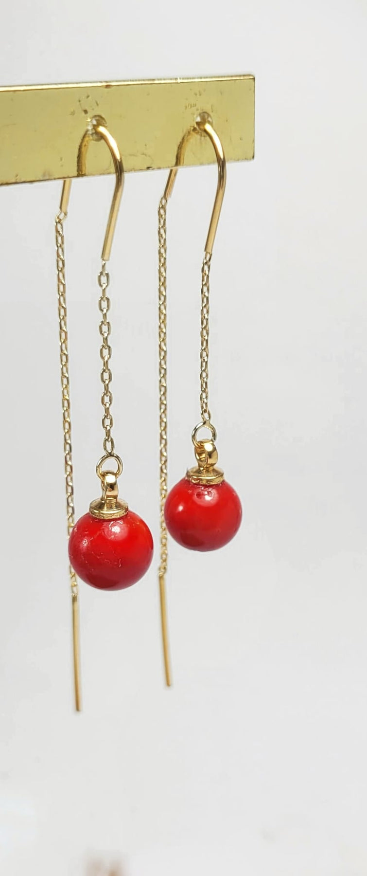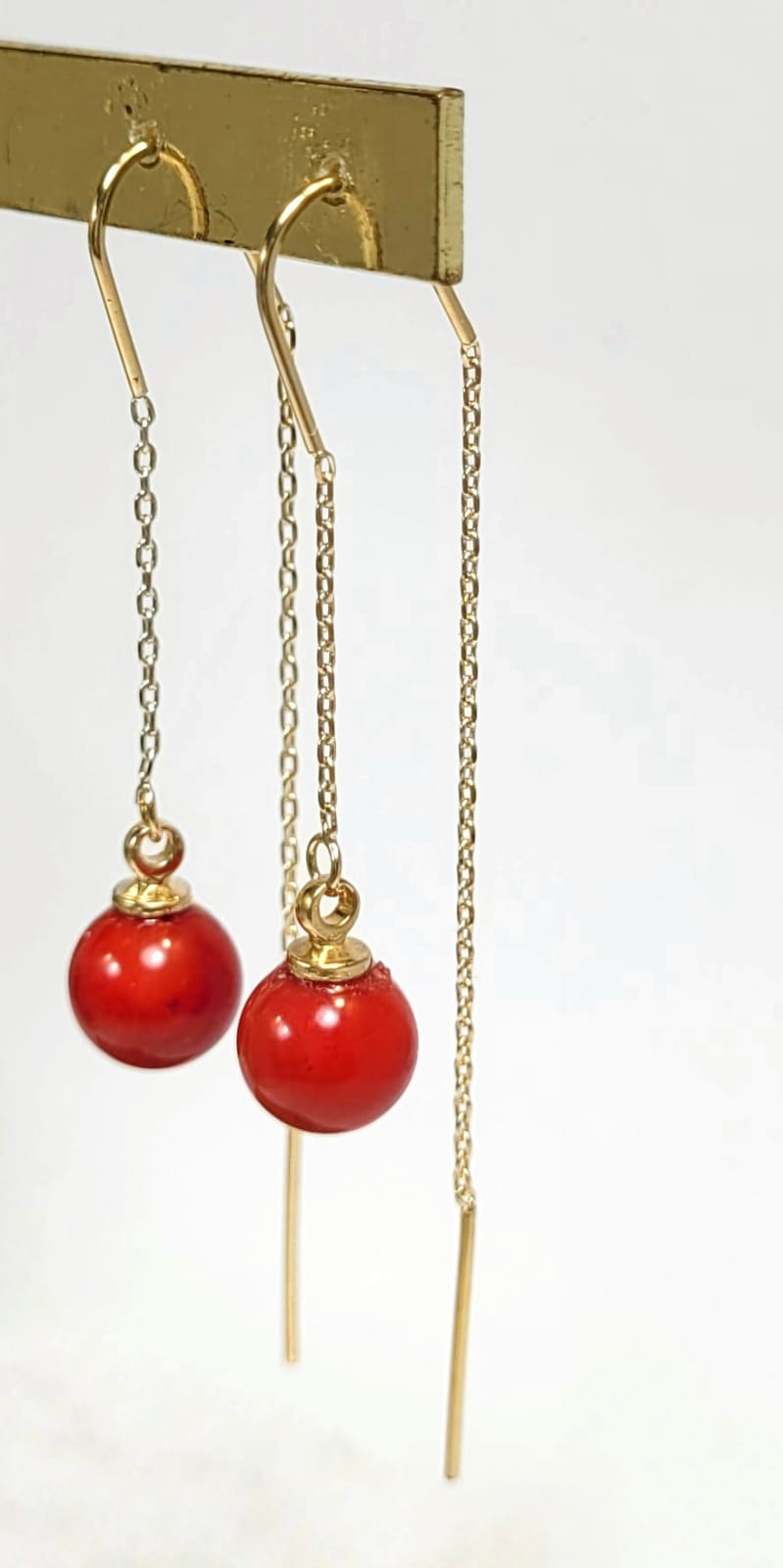 עגיל שרשרת עם אבן קורל 8 מ״מ